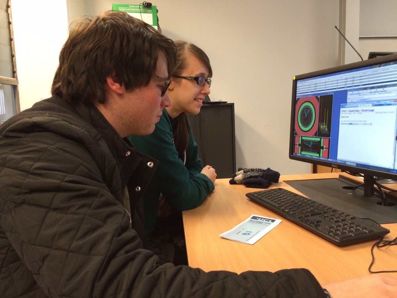 The group then had an excellent lecture on Dark Matter which detailed some current research in the race to discover what it is. The students then continued to analyse track data from the detector. This data was then combined with all the other physicists present. The group analysis was then compared in an international video conference with others from Barcelona, Pavia, Slovenia and Milan.