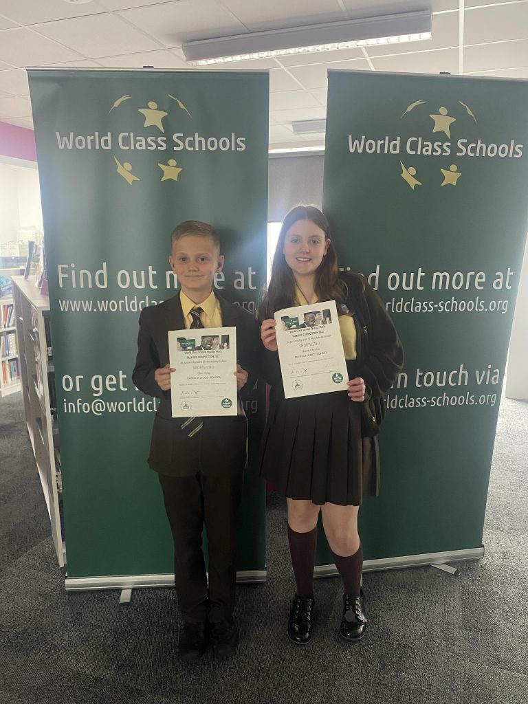 On Wednesday, Mrs Keaney, Mr Jewell, Glon Sylaj and Niamh Christie attended the World Class Schools Quality Mark Symposium, hosted by St Marylebone School in London. Both students had entered the Talk Off competition advertised over the half term and their entries were shortlisted to the final 14 students. There were over 100 entries from schools within the World Class Schools group. The speeches that Glon and Niamh wrote were written independently and recorded in the School’s state of the art sound booth. They were tasked with writing a speech that answers the question, “How can World Class students use social media as a force for good?” The speeches can be heard on the DWS Audio website. Both have powerful messages that well worth listening to. At the symposium, Glon and Niamh completed workshops on their speech in the morning, working with professionals from LinkedIn and delivered their speech in the afternoon. They both did an excellent job and were commended by the professionals and other staff members in attendance. We are pleased to announce that they came joint runners-up overall. It was a tough competition and the standard was very high. We are very proud of them and they certainly deserve to be called world class.