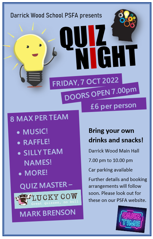 The PSFA is planning a quiz night on Friday, 7th October. Please save the date and start thinking about getting your team together. Teams can be up to eight but smaller numbers can be put together on the night if needed so that everyone gets to participate.