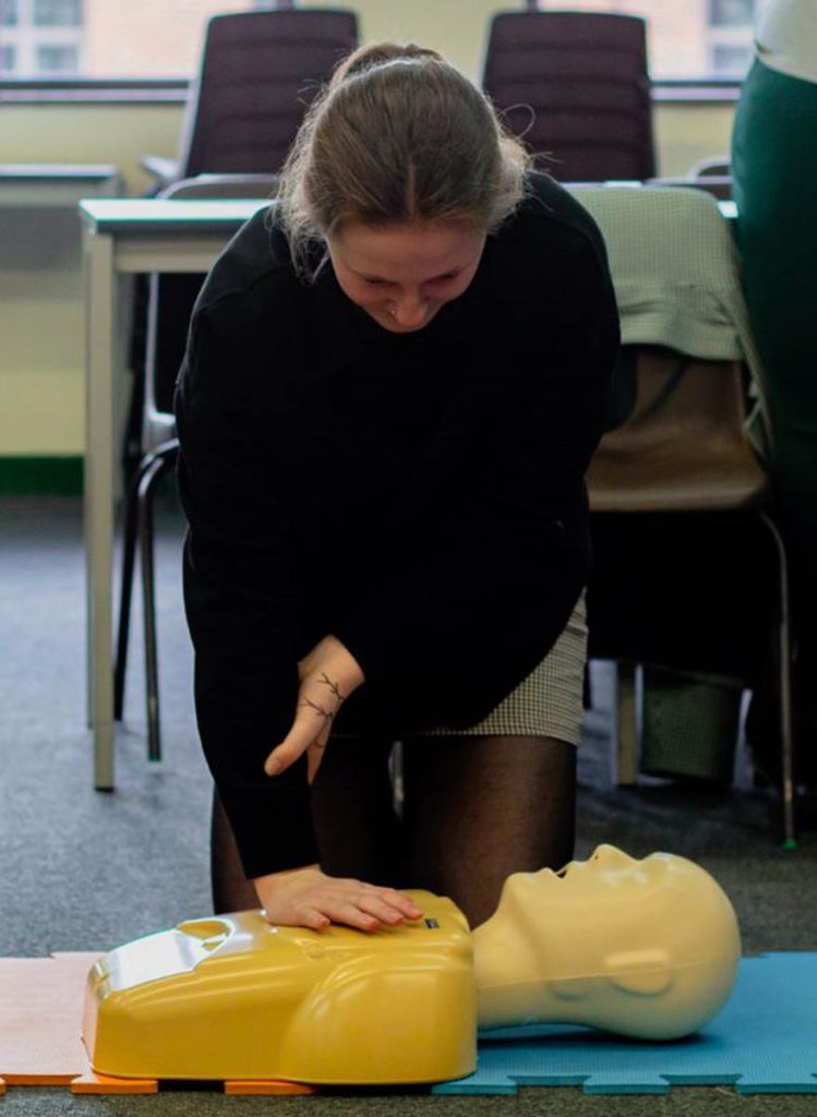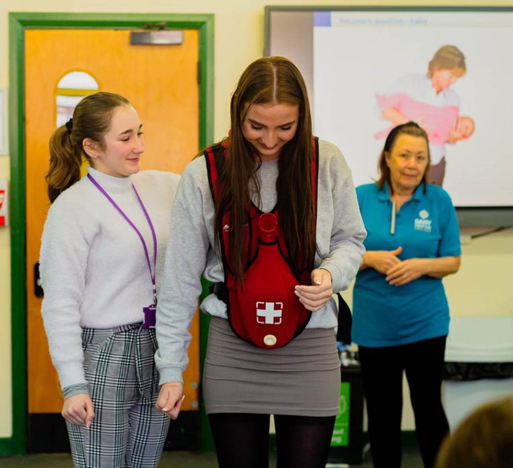 As part of the Year 13 Level 3 BTEC in Children’s Play Learning and Development, students are required to demonstrate their knowledge of first aid. A representative from Daisy First Aid came into school on Tuesday to teach the students these skills during a two hour interactive first aid session. Students were shown how to respond to a number of child related emergencies including choking and cardiac arrest. They learned how to administer CPR to babies and children as well as how to put them into the recovery position. The students practised on baby and child sized resuscitation dummies and were able to test out their ability to save a choking child using the choking vest. All students thoroughly enjoyed the session and are now confident in responding to different child related first aid situations.