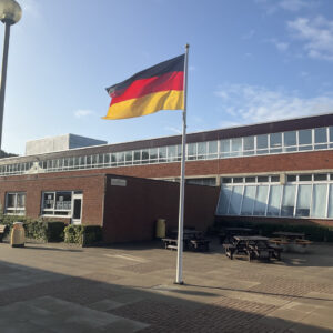 On Tuesday we flew the German flag. This year, we have decided to put extra emphasis on celebrating other nations with links to our school. We have a flag pole, so we want to use it better! This Tuesday celebrated 33 years since German Reunification (the year after the Berlin Wall fell and East Germany and West Germany became one nation for the first time since World War 2). As a school that teaches German to the Y half in Year 7 and others in Year 8 onwards right up to A level, it is important we know about the culture and history of a country as much as its language. The flying of flags in this way definitely generates lots of interest from our students.