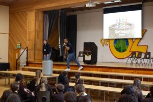 Year 7 took part in a Mental Health Workshop this week, run by a company called Humanutopia. Students were encouraged to examine whether they are products of their circumstances (things over which they have no control) or products of their choices. They were encouraged to make decisions which reflect their best selves. They examined the effect of their actions and decisions on other’s wellbeing (filling other people’s bins). Finally, pupils were encouraged to stretch themselves (enter the panic zone) and have aspirational targets and consider the changes they would need to make to their current behaviours in order to realise these. Year 13 students (Heroes) volunteered their time to assist with the event and we were grateful for their input.