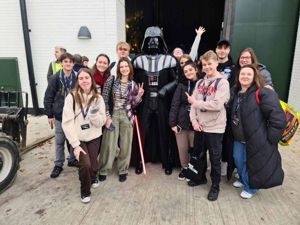 On Friday the Year 13 Film Studies class were lucky enough to go to Pinewood Studios for the day. Whilst there they were able to look at future careers and opportunities, try some of the high-tech filming equipment, work on green screens and meet characters from Pinewood’s notorious films. They finished the day with a seminar from Brian Muir, a prop and set sculpture creator, that has worked in the industry for 45 years. The day was enjoyed by all and was an amazing opportunity for everyone.