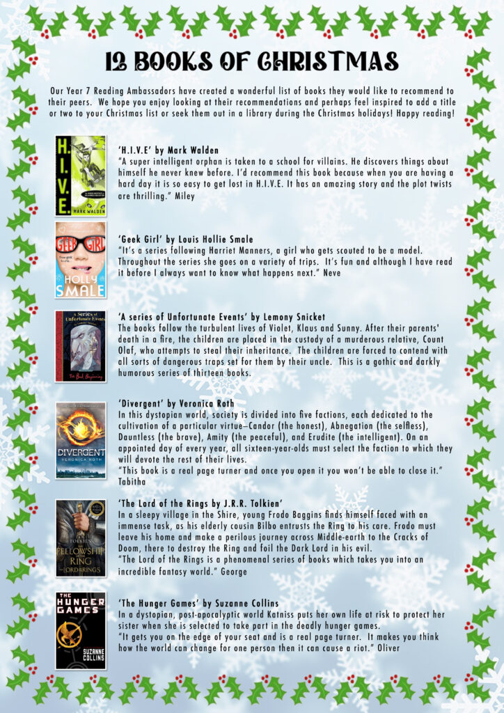 Finally, our Y7 Reading Ambassadors had fun sharing their favourite reads when they met last week. Perhaps the resulting book recommendation could help out with those last minute Christmas gift ideas?