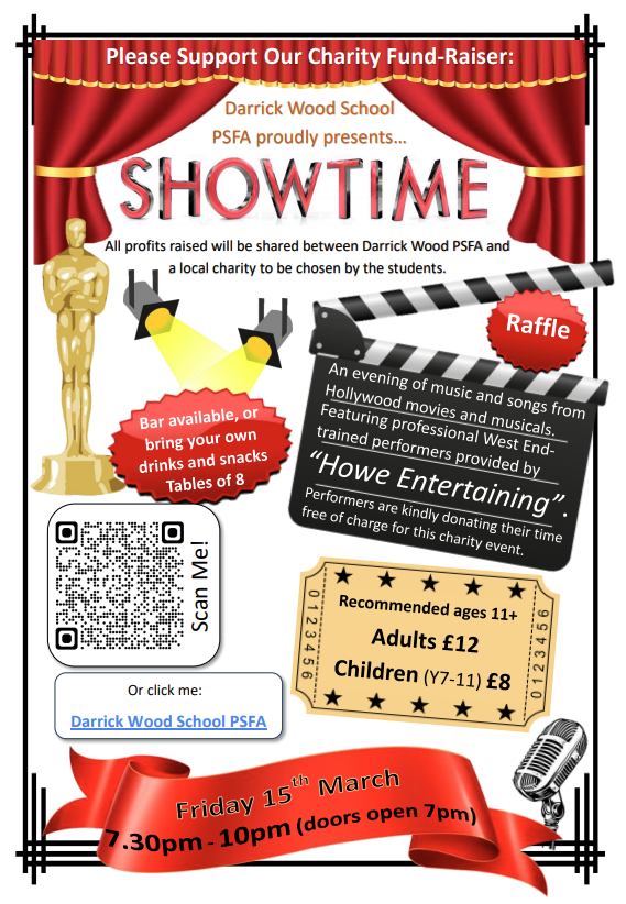 Please see the attached poster for further details and the link to the tickets is here: Darrick Wood School PSFA (pta-events.co.uk)