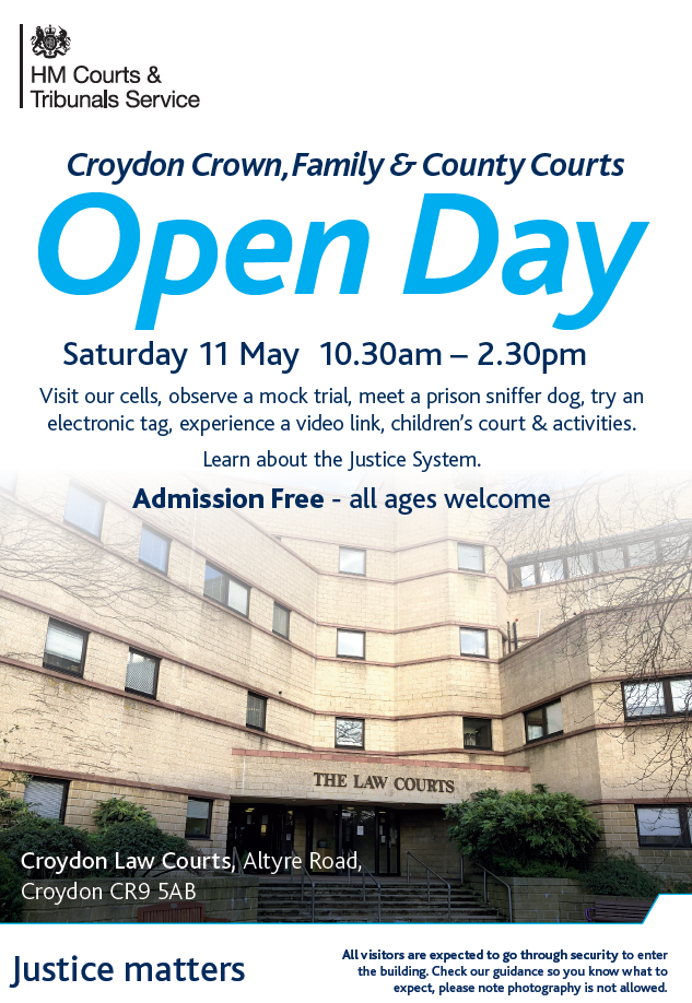 Croydon Courts have what looks to be a fascinating Open Day on Saturday, 11th May 2019. They have asked whether any of our students or their families would be interested in attending.